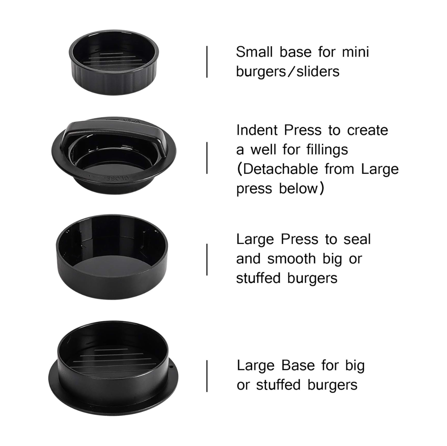 • 🍔 3-in-1 Design – Make full-size burgers, stuffed patties, and sliders with one versatile tool.