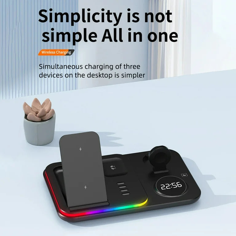• Multifunctional Charging Station: Charge your phone, smartwatch, and wireless earbuds simultaneously.