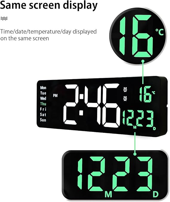1. 16-inch Large Screen: The 16-inch LED display offers large, clear digits that are easy to read, even from across the room. Whether placed on a nightstand, desk, or shelf, it ensures you always have a clear view of the time.