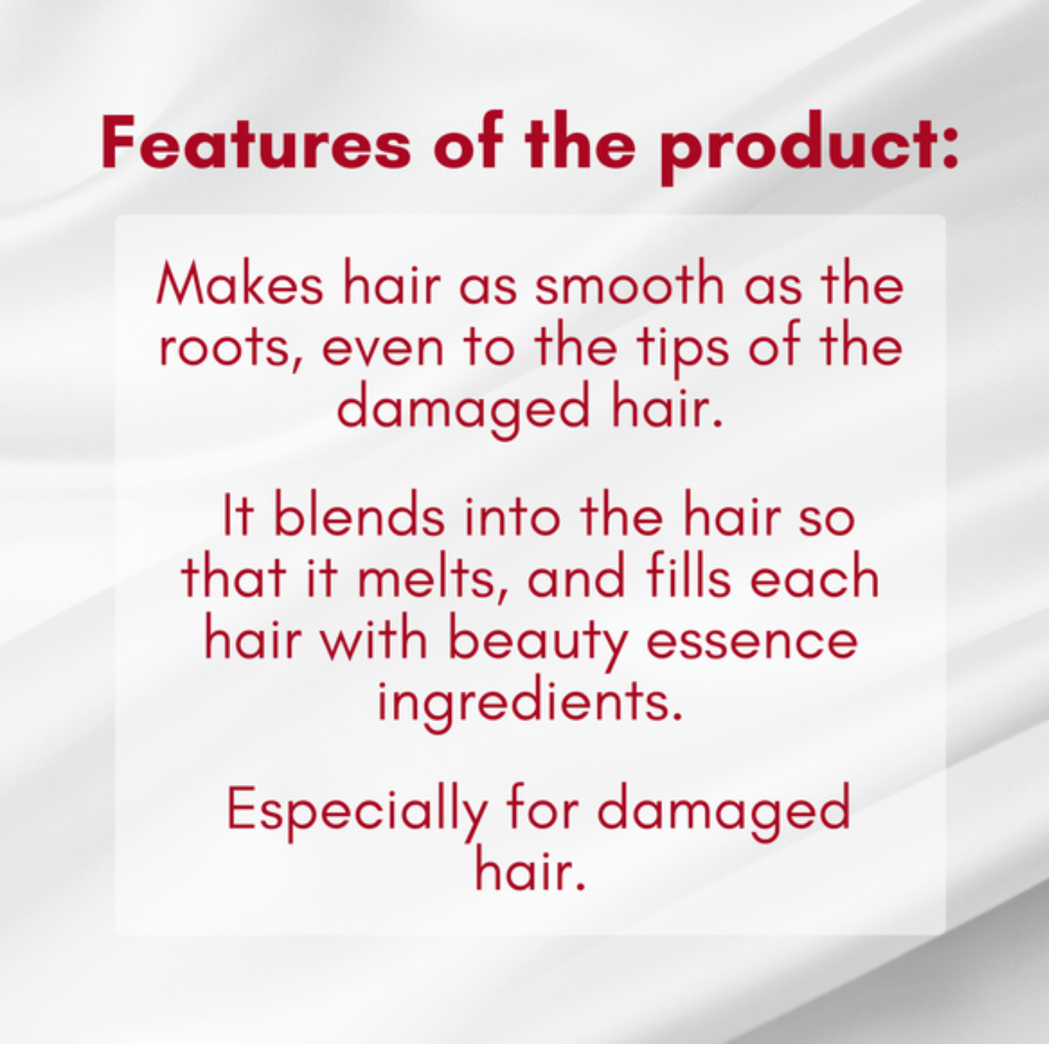 • Reinforces weak and brittle hair, reducing breakage and improving elasticity.